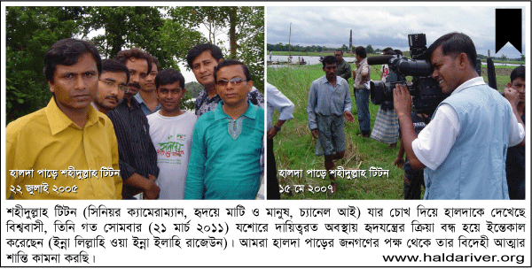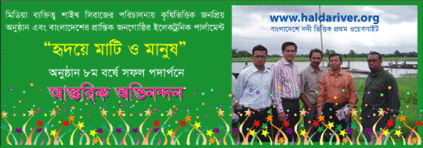 দেশের নদী রক্ষা ও পরিবেশ সংরক্ষণে অনন্য ভূমিকা রেখে এনটিভি আজ সফলভাবে ৯বম বর্ষে পদার্পন করছে। হালদা নদী রক্ষা কমিটি ও http://www.haldariver.org/ এর পক্ষ থেকে আমরা চট্টগ্রাম ব্যুরো চীফ জনাব সামশুল হক হায়দরীসহ এনটিভি পরিবারের সকল সদস্যদের আন্তরিক অভিনন্দন জানাচ্ছি। |